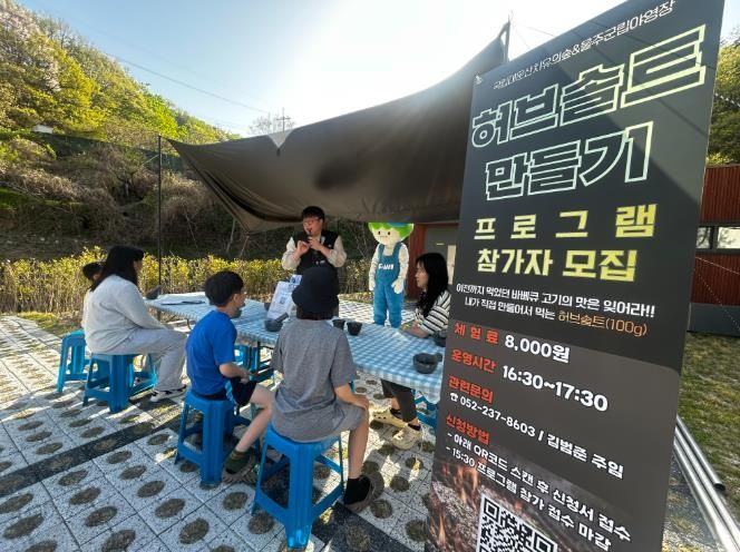 이번 프로그램은‘아로마테라피 허브솔트 만들기 체험’으로, 가족 단위 야영장 이용객을 대상으로 진행됐다.