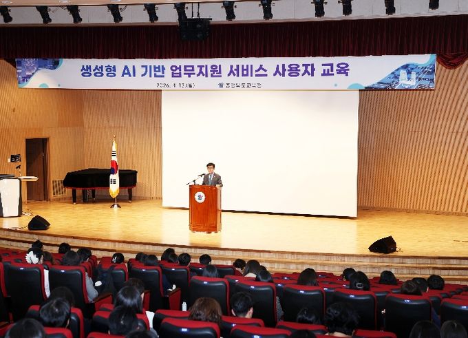 (포탈뉴스통신) 충청북도교육청은 13일, 교육연구정보원 시청각실에서 생성형 AI 이해와 활용 확산을 위한 '생성형 AI 기반 업무지원 서비스 사용자 교육'을 실시했다.