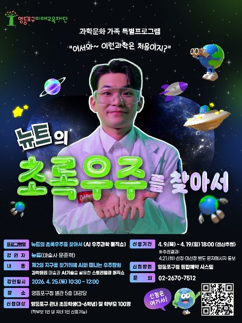 영등포구 미래교육재단 이사장은 “이번 프로그램이 아이들에게는 과학에 대한 호기심을 일깨우고 학부모에게는 자녀와 소통하는 소중한 시간이 되길 바란다”라고 전했다.