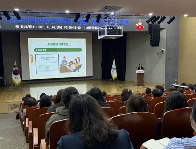 (포탈뉴스통신) 세종특별자치시육아종합지원센터는 4월 14일 세종특별자치시청 4층 여민실에서 관내 어린이집 보육교직원을 대상으로 200여명을 대상으로‘2026년 법률 분쟁 대응 교육’을 실시했다고 밝혔다.