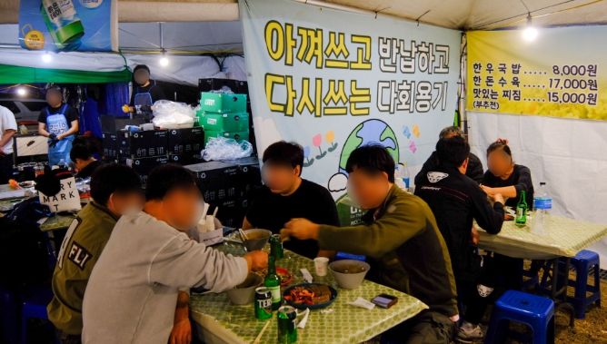 국밥, 전, 수육, 오징어무침 등 음식 메뉴에는 국그릇과 크기별 접시 등 5종의 다회용기를 사용해 1회용품 쓰레기를 대폭 줄였으며, 나흘간 다회용기 약 5만여 개가 사용된 것으로 집계됐다.
