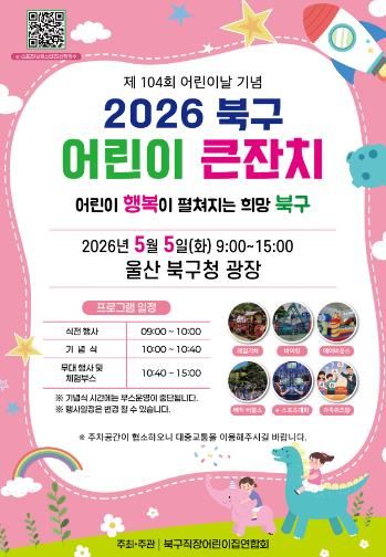 (포탈뉴스통신) 울산 북구 어린이 큰잔치가 5월 5일 북구청 광장에서 열린다.