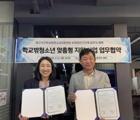 (포탈뉴스통신) 대구 서구학교밖청소년지원센터는 지난 4월 14일 비영리민간단체 ‘일만의 행복’과 학교밖청소년 지원을 위한 업무협약을 체결했다.