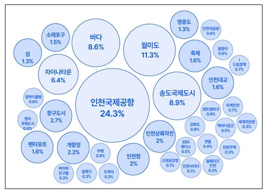 그러나 인천 관련 검색어·연관어를 활용한 워드클라우드 분석에서는 시민·방문객·기업 등 이해관계자가 떠올리는 도시 이미지와 인천시가 지향하는 이미지 간 간극이 확인되어 통합적 도시브랜딩 전략과 관리·운영 체계는 여전히 보완이 필요한 것으로 나타났다.