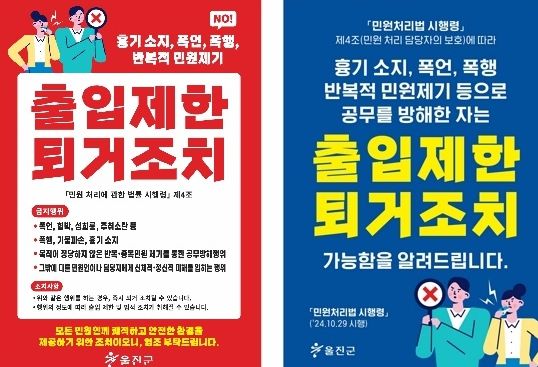 군은『민원 처리에 관한 법률 시행령』 개정(2024.10.29. 시행)으로 특이(악성) 민원인에 대한 퇴거 및 출입 제한의 법적 근거가 명확해졌다고 밝혔다.