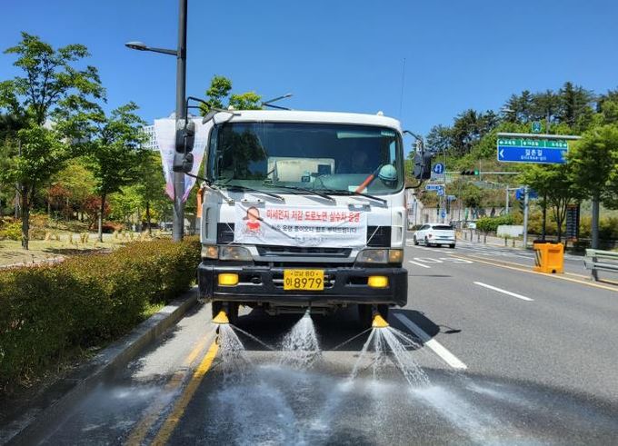 중구는 종가로·성안로·다운로·다전로·태화로 5개 노선을 1구역, 번영로·북부순환도로·화합로·강북로 4개 노선을 2구역으로 묶어 매주 다섯 차례 살수 작업을 실시할 계획이다.