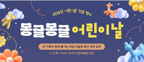 (포탈뉴스통신) 부산시립박물관 소속 정관박물관은 오는 5월 5일 '제104회 어린이날'을 맞아 온 가족이 함께 즐길 수 있는 기념 행사 '몽글몽글 어린이날'을 개최한다고 밝혔다.