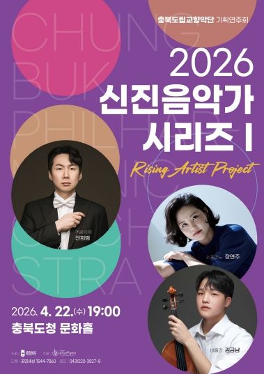 (포탈뉴스통신) 충북도립교향악단은 4월 22일 오후 7시, 충북도청 문화홀에서 기획연주회 ‘2026 신진음악가 시리즈Ⅰ’을 개최한다.