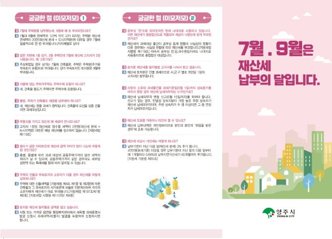 (포탈뉴스통신) 영주시는 2026년 7월 정기분 재산세 부과를 앞두고 시민들의 세금 납부 이해도를 높이고 편의를 제공하기 위해 재산세 안내 리플릿을 제작·배부한다.