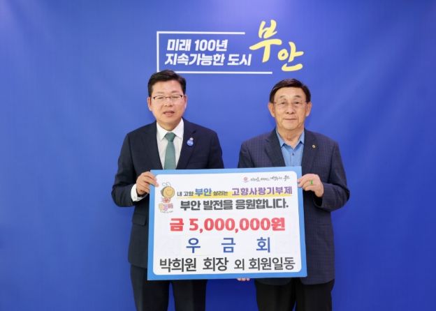 박희원 우금회 회장은 “타지에서 생활하면서도 마음속 깊은 곳에는 늘 고향 부안이라는 든든한 뿌리가 있었다”며 “회원들의 정성이 담긴 이번 기부금이 부안의 지속 가능한 성장을 뒷받침하고 군민들의 삶이 더 따뜻하고 풍요로워지는 데 작게나마 보탬이 되길 희망한다”고 말했다.