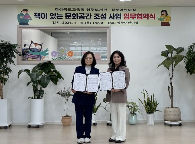 (포탈뉴스통신) 경상북도교육청 성주도서관(관장 이은희)은 지역 아동의 독서습관 형성과 생활 속 책 읽기 환경 조성을 위해 성주군다함께돌봄센터 1호점‧2호점, 성주어린이집과 '책이 있는 문화공간 조성'사업 업무협약을 체결했다.