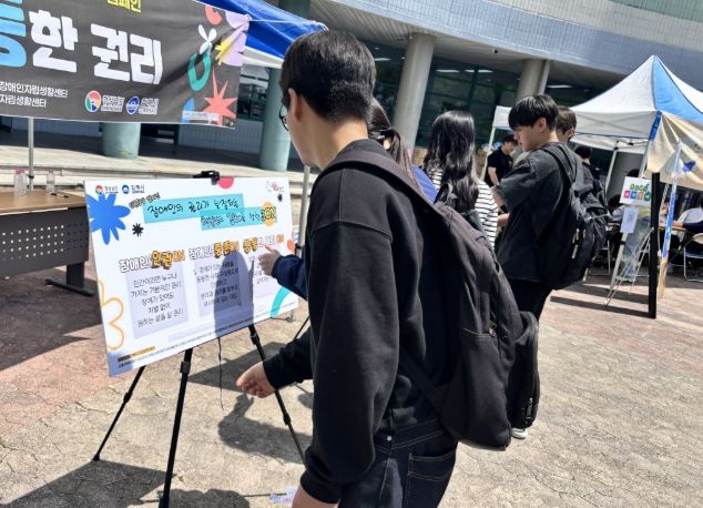 (포탈뉴스통신) (재)김해시복지재단 김해시장애인종합복지관(관장 류재복)은 김해장애인복지기관네트워크 합동으로 지난 13일부터 15일까지 3일간 지역 내 대학생들을 대상으로 장애인식개선 캠페인 ‘동정이 아닌, 동등한 권리’을 진행했다.