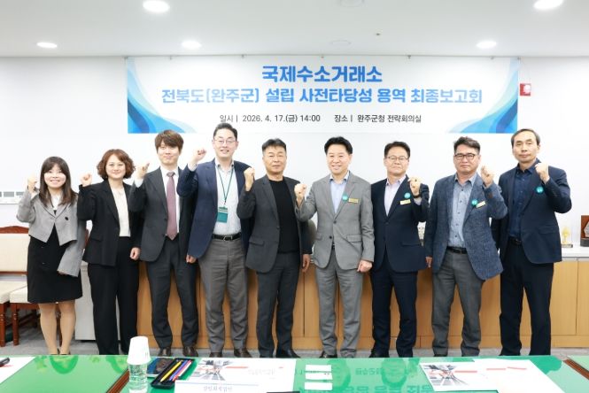 (포탈뉴스통신) 완주군과 전북특별자치도가 17일 군청 4층 전략회의실에서 ‘국제 수소거래소 전북도(완주군) 설립 사전타당성 용역’ 최종 보고회를 열고 세계 수소 유통 질서 선점을 위한 전략 수립에 나섰다.
