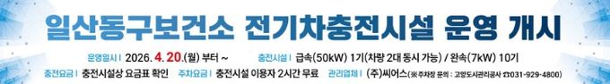 (포탈뉴스통신) 고양특례시 일산동구보건소가 오는 20일부터 전기차충전시설 운영을 본격적으로 시작한다.