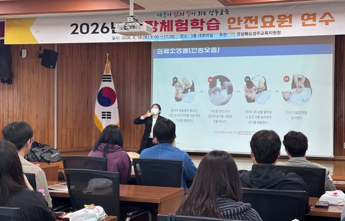 (포탈뉴스통신) 성주교육지원청은 4월 18일 관내 초·중·고등학교 교사 30명을 대상으로 현장체험학습 운영의 안전 역량을 강화하기 위해 '2026년 현장체험학습 안전요원 연수'를 실시했다.
