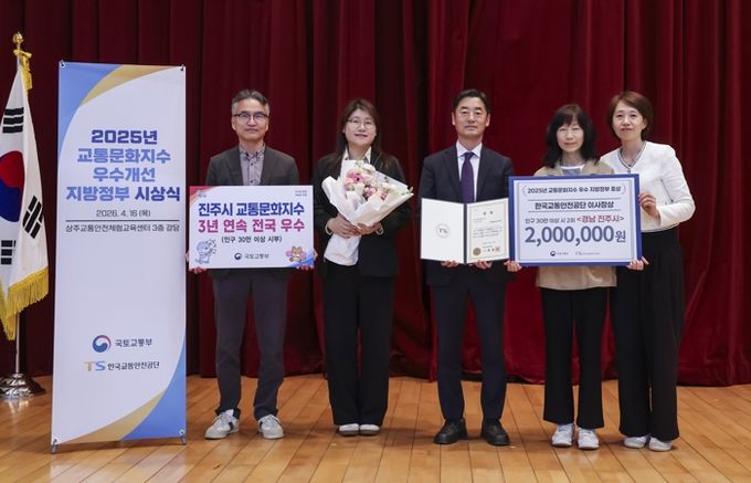 (포탈뉴스통신) 진주시는 지난 16일 국토교통부가 주최한 ‘2025년 교통문화지수 우수 지자체 시상식’에서 인구 30만 명 이상의 시부 그룹에서 전국 2위를 차지해 3년 연속 우수 지자체로 선정돼 기관 표창을 받았다고 밝혔다.