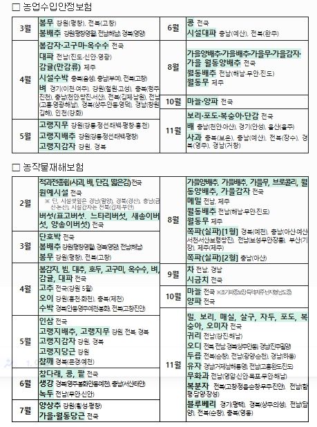 벼는 지난해 4개 시·군을 대상으로 운영했고, 올해 16개 시·군에 신규 도입하여 총 20개 시·군에서 확대 운영된다. 아울러, 봄배추·봄무는 평창 등 주산지 중심으로 시범 운영에 착수하는 한편, 봄감자·고구마·옥수수는 전국으로 확대하여 운영한다.