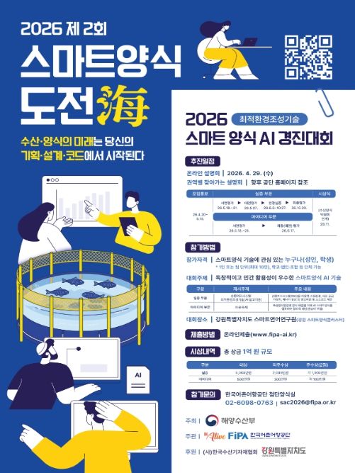 (포탈뉴스통신) 해양수산부와 한국어촌어항공단(이사장 홍종욱)은 4월 20일부터 5월 15일까지 ‘제2회 스마트양식 도전해(海) 경진대회’의 공모를 실시한다고 밝혔다.