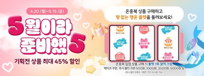 또한, 구매 고객을 대상으로 ‘행운 룰렛 이벤트‘를 진행하여 케이크 쿠폰과 500원부터 5,000원까지의 즉시 할인쿠폰도 제공하여 소비자의 참여를 유도하고 쇼핑 만족도를 높일 계획이다.