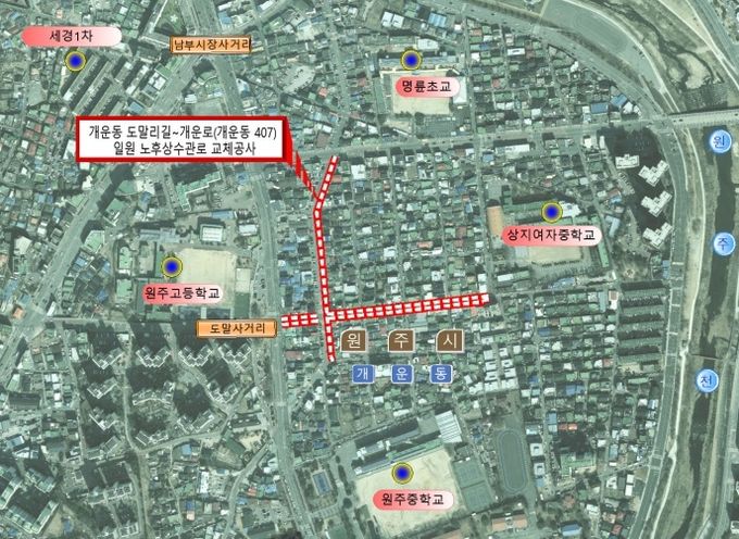 (포탈뉴스통신) 원주시상하수도사업소는 깨끗한 수돗물 공급을 위해 5월부터 ‘개운동 도말리길-개운로 일원 노후상수관 교체공사’를 추진한다.