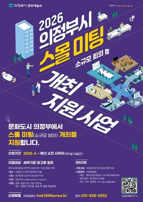 (포탈뉴스통신) 의정부시는 관외에 소재지를 둔 기관 및 단체 등을 대상으로 ‘2026 의정부시 스몰미팅(소규모 회의) 개최 지원사업’을 추진한다.