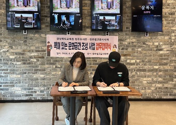 (포탈뉴스통신) 경상북도교육청 성주도서관은 성주별고을시네마와 '책이 있는 문화공간 조성'사업 추진을 위한 업무협약을 체결하고, 작은영화관과 연계한 독서문화 확산에 나선다.