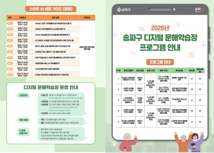 송파구 관계자는 “이제 디지털 기술과 AI 사용법은 일상에서 꼭 필요한 역량”이라며 “주민 누구나 생활 속에서 자연스럽게 관련 교육을 접할 수 있게 지원을 더욱 확대해 나가겠다”라고 밝혔다.