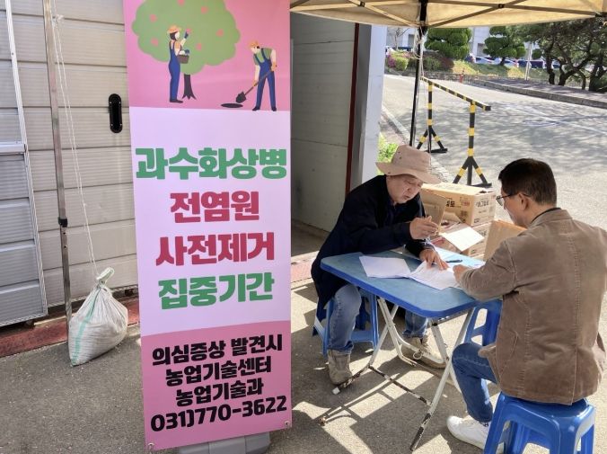 이에 군은 개화기 사용 등록 약제를 활용한 단계적 방제 체계를 바탕으로 재배 농가에 약제를 공급하고, 시기에 맞춘 적기 살포를 안내하고 있다. 이번 조치는 개화기 감염원을 사전에 차단하고 안정적인 과원 관리를 지원하기 위해 추진됐다.