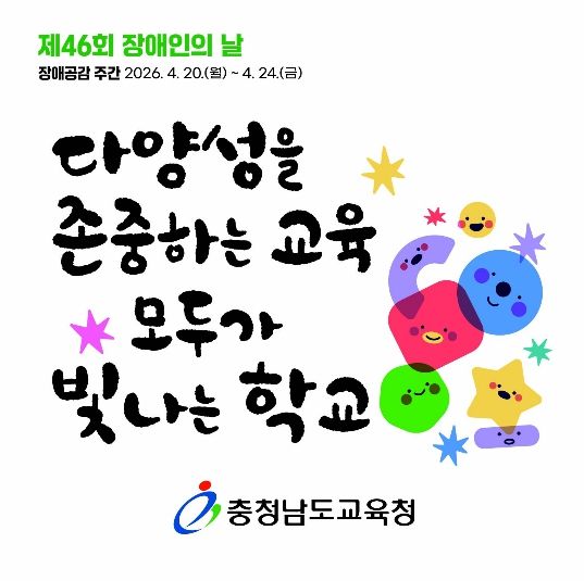 (포탈뉴스통신) 충남교육청은 제46회 장애인의 날을 맞아 장애공감문화 확산을 위해 4월 20일 ~ 24일을 ‘장애공감주간’으로 운영한다고 밝혔다.