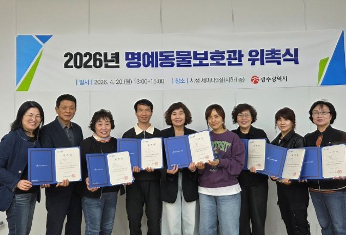 (포탈뉴스통신) 광주광역시는 20일 시청 세미나실에서 성숙한 반려동물 문화 정착과 동물복지 증진을 위한 ‘2026년 명예동물보호관 위촉식’을 개최했다.