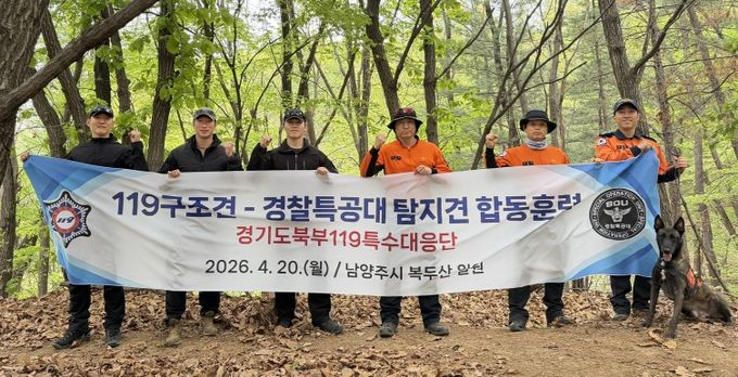 (포탈뉴스통신) 경기도북부119특수대응단은 20일 남양주시 복두산 구조견센터 훈련장에서 119구조견과 경찰특공대 탐지견이 참여하는 합동훈련을 실시했다.