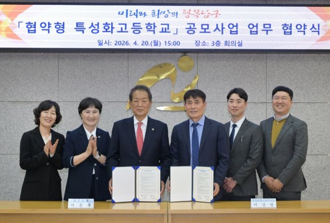 (포탈뉴스통신) 울산 남구는 20일 구청장실에서 울산공업고등학교와 교육부 주관 ‘2026년 협약형 특성화고등학교 공모사업’ 신청을 위한 업무협약을 체결했다.