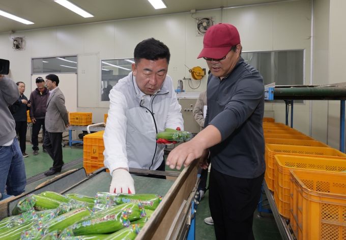 (포탈뉴스통신) 이범석 청주시장은 20일 흥덕구 오송읍에 위치한 청원생명 애호박 공동선별장을 방문해 공선 및 유통 현황을 점검하고 관계자와 지역 농민들을 격려했다.