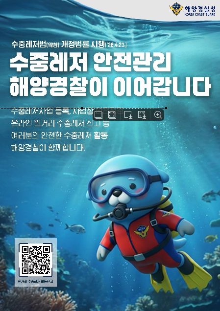 (포탈뉴스통신) 해양경찰청은 수중레저 사업장 증가와 이용객 증가에 「수중레저활동의 안전 및 활성화 등에 관한 법률」(약칭. 수중레저법)을 시행(4.23.)하며 수중레저 안전관리를 강화한다고 밝혔다.