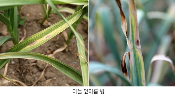 기온이 15~20℃ 수준으로 유지되면 잎마름병 발생은 빠르게 늘어날 수 있다. 잎마름병은 마늘 재배에서 발생 비율이 높은 주요 병해로, 초기 방제가 늦어지면 단기간에 확산돼 수량 감소로 이어질 수 있다.