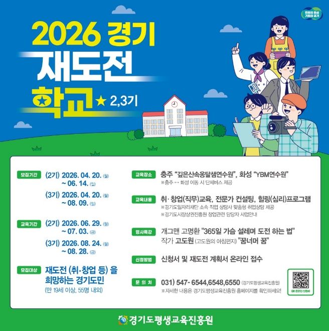 (포탈뉴스통신) 경기도와 경기도평생교육진흥원은 취업이나 창업 실패를 경험한 도민의 재기를 지원하기 위해 오는 20일부터 ‘2026년 경기 재도전학교’ 2~3기 참가자를 각각 55명 내외로 모집한다.