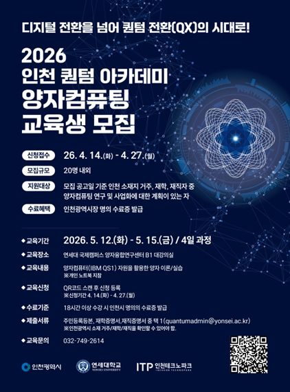 시는 연세대학교와 협력해 ‘2026 인천 퀀텀 아카데미’의 교육생을 모집한다.