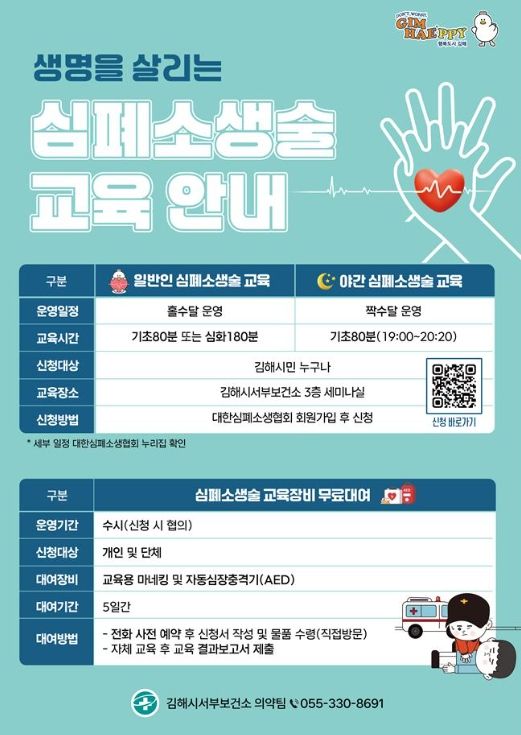 김해시는 심폐소생술 교육 확산을 위해 교육장비 무료 대여 사업도 추진하고 있다.