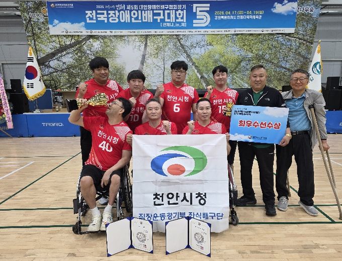 천안시는 지난 17일부터 19일까지 강원 인제군에서 열린 ‘제5회 대한장애인배구협회장기 전국장애인배구대회’에서 시 소속 좌식배구팀이 남자 전문부 정상에 올랐다고 21일 밝혔다.