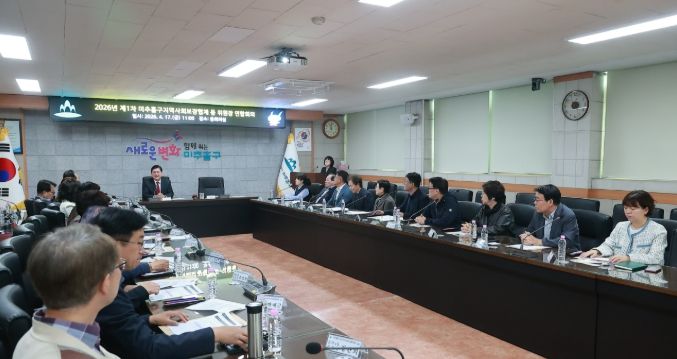 (포탈뉴스통신) 인천 미추홀구는 지난 17일 구청 중회의실에서 21개 동 지역사회보장협의체 위원장들이 참석한 가운데 ‘2026년 제1차 동 지역사회보장협의체 위원장 회의’를 개최했다.