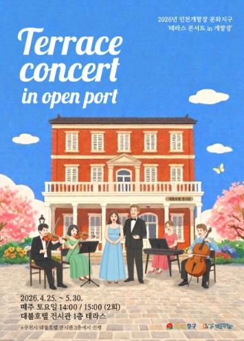 (포탈뉴스통신) (재)인천중구문화재단은 오는 4월 25일부터 5월 30일까지 매주 토요일마다 인천 개항장 문화지구 내 대불호텔 전시관 테라스에서 '테라스 콘서트 in 개항장'’을 운영한다고 밝혔다.