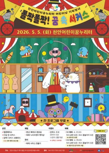 (포탈뉴스통신) 천안시가 설립하고 백석대학교 산학협력단이 위탁 운영하는 천안어린이꿈누리터가 오는 5월 5일 어린이날을 맞아 기획행사 '폴짝폴짝! 꿈 속 서커스'를 운영한다.