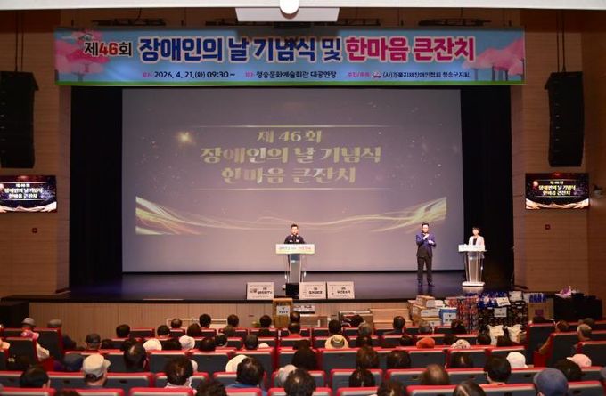 (포탈뉴스통신) 청송군은 (사)경북지체장애인협회 청송군지회 주관으로 4월 21일 청송문화예술회관 대공연장에서 ‘제46회 장애인의 날 기념식 및 한마음 큰잔치’를 성황리에 개최했다고 밝혔다.