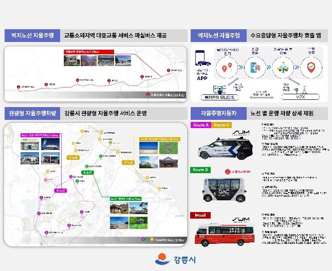 특히 이용객 측면에서는 2025년 관광형 자율주행차 이용객은 10,529명으로 2024년 3,432명 대비 300% 이상 대폭 상승했다. 특히 교통 소외 지역인 연곡면에서 운행된 벽지노선 자율주행 마실버스는 2025년 7월 26일 운행개시 후 현재까지 4,500여 명의 주민을 실어 나르며 복지형 교통수단으로서의 가치를 인정받았다.