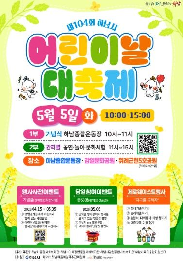 (포탈뉴스통신) 하남시는 2026년 제104회 어린이날을 맞아 오는 5월 5일, 어린이와 가족이 함께 즐길 수 있는 ‘제104회 하남시 어린이날 대축제’를 개최한다.