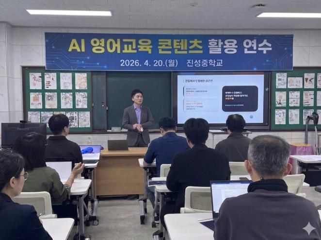 청송교육지원청은 20일 진성중학교에서 교사를 대상으로 AI 영어교육 콘텐츠 활용 연수를 운영하며 사업의 현장 안착에 나섰다.