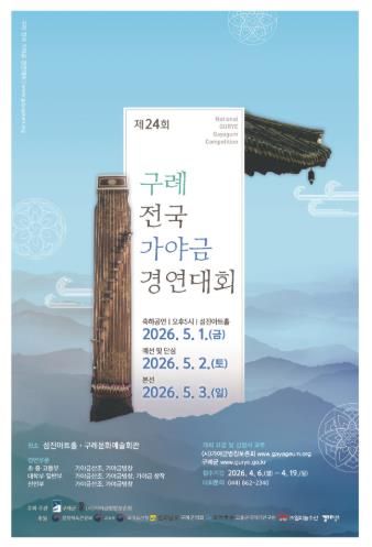 (포탈뉴스통신) 전남 구례군이 주최하고 (사)가야금병창보존회가 주관하는 ‘제24회 구례 전국 가야금 경연대회’가 오는 5월 2일부터 3일까지 이틀간 열린다.