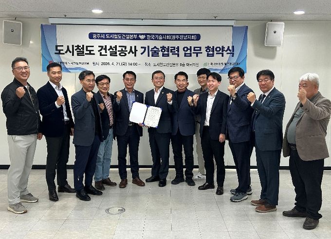 (포탈뉴스통신) 광주광역시 도시철도건설본부는 21일 본부 8층 대회의실에서 한국기술사회 광주·전남지회와 ‘광주시 도시철도 2호선 건설공사 기술협력 업무협약’을 체결했다.