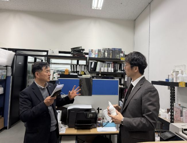 이원구 수원시 경제정책국장을 비롯한 현장 지원단은 두피 보호기능 화장품을 생산하는 ㈜크로마흐(델타플렉스 벤쳐밸리2)를 찾아 이동환 대표를 비롯한 임직원들과 이야기를 나눴다.