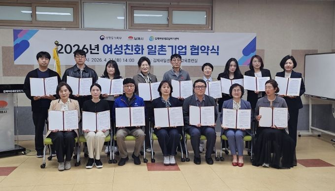 (포탈뉴스통신) 김제시여성새로일하기센터는 지난 21일 새일센터 직업훈련실에서여성 취업자의 고용 유지 지원 등을 위한 지역 업체와의 협력망 구축을 위해'2026년 여성친화 일촌기업 협약식'을 개최했다고 밝혔다.